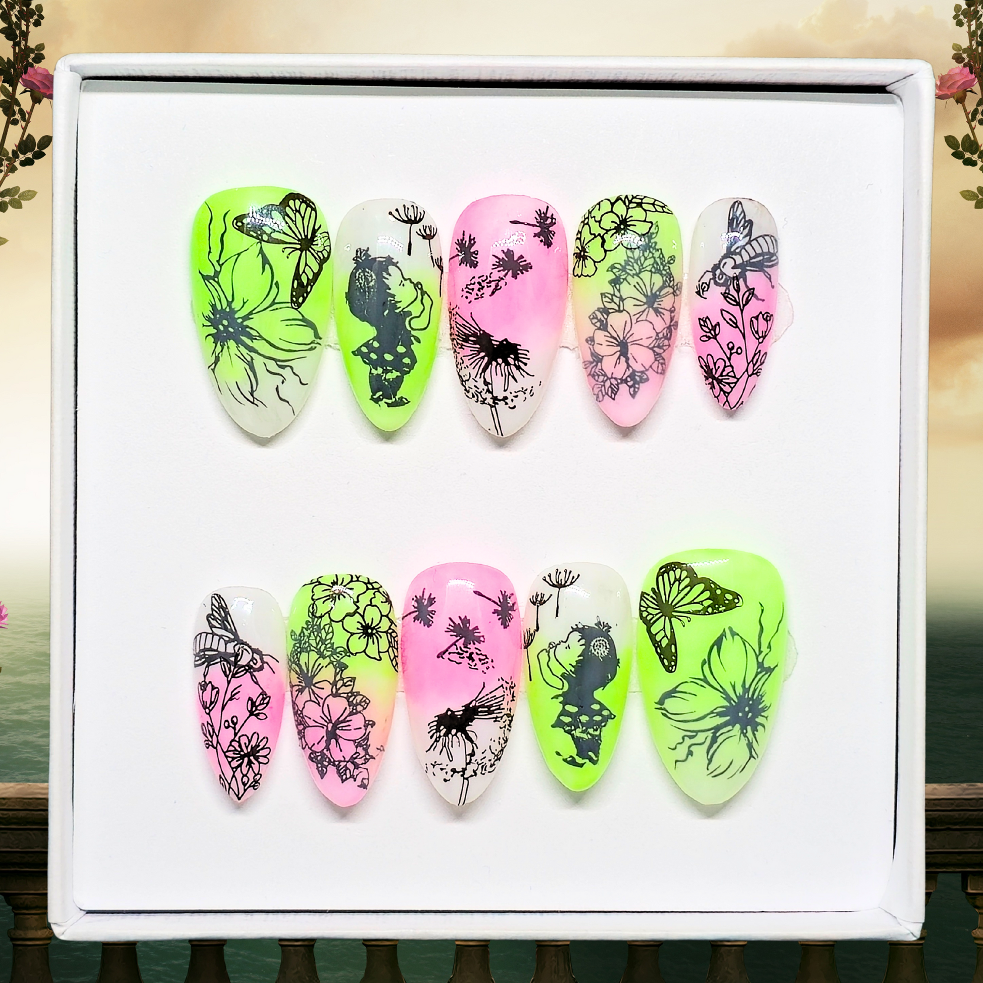 Chaque set de press on nails est réalisé à la main avec le plus grand soin. De ce fait, de légères variations peuvent exister entre les visuels présentés sur le site et le produit final livré.
