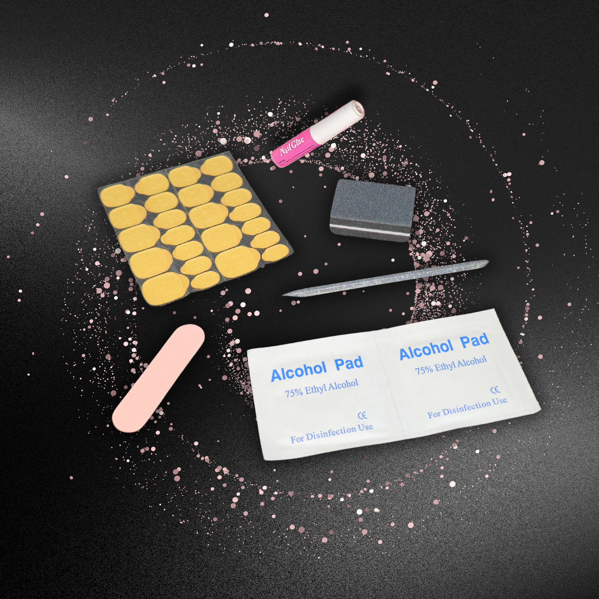 Inclus pour chaque commande de press on nails. Tout ce dont vous avez besoin pour une pose parfaite, réuni en un seul kit ! Notre Kit de Pose est conçu pour vous offrir une application facile, rapide et durable, même à la maison. Que vous soyez débutante ou pro, ce kit contient les essentiels pour préparer vos ongles, les coller et les entretenir sans effort.