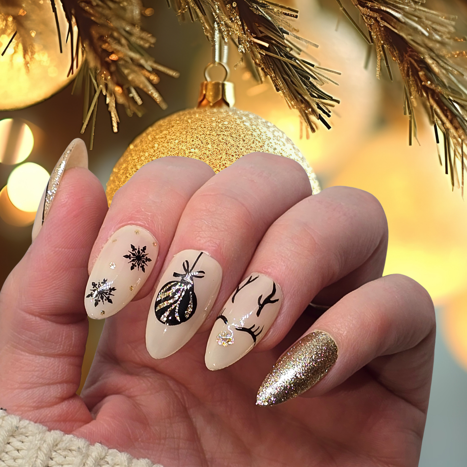 Lueur transforme la pose en une étreinte visuelle. Il n'évoque pas les grands projecteurs aveuglants, mais la flamme dansante d'une bougie ou le reflet doré des guirlandes dans un salon tamisé. C'est une lumière qui réchauffe et rassure. Porter cette pose, c'est incarner une présence bienveillante, douce et apaisante. Le petit renne et l'éclat doré ne sont plus de simples décorations, mais des étincelles de joie pure qui brillent doucement au cœur de l'hiver.