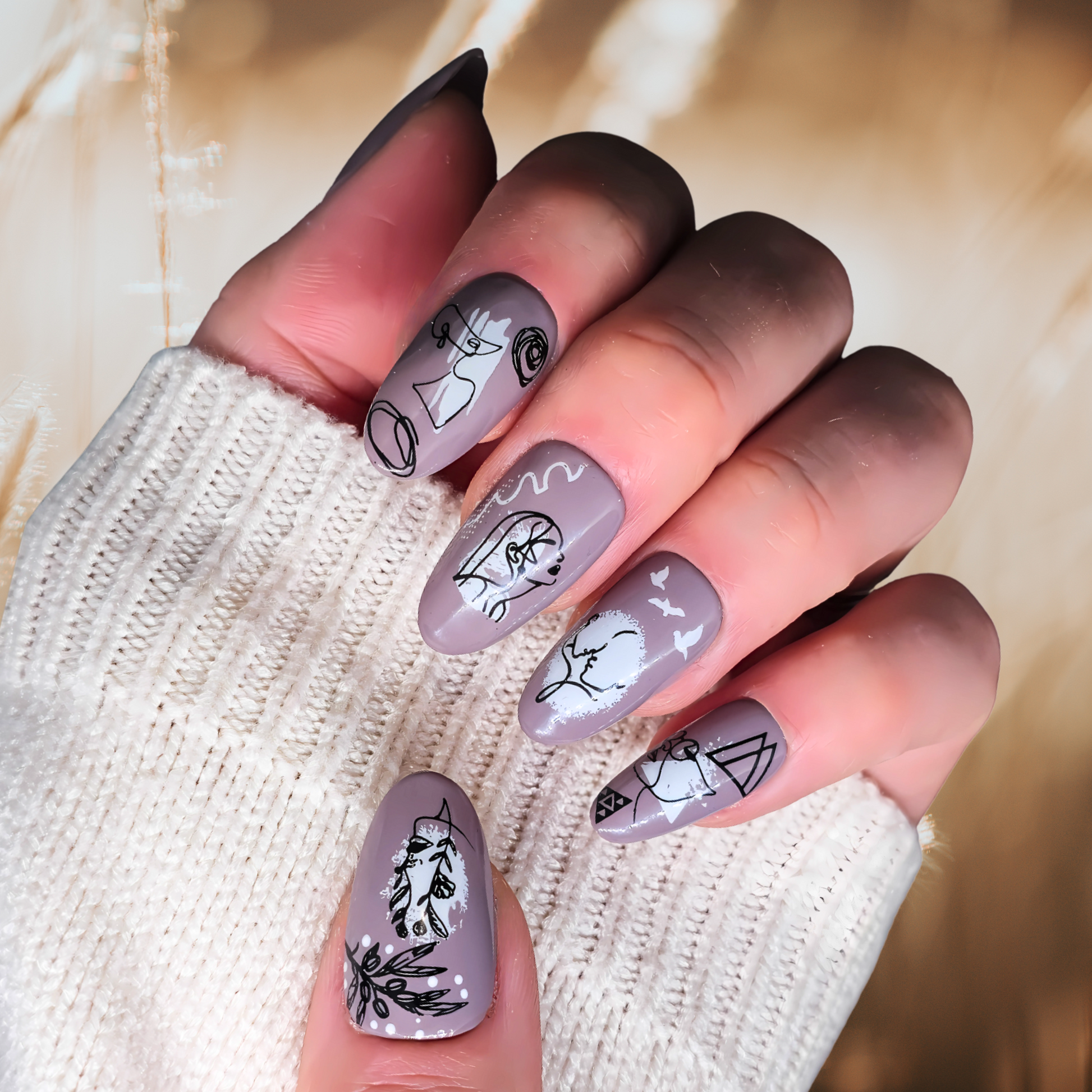 Une pensée qui s'épanche en silence. Des visages dessinés d'un seul souffle, des lignes qui racontent sans un mot, une poésie en suspension. Chaque ongle devient une scène où l'âme s'exprime — libre, sensible, infiniment elle.