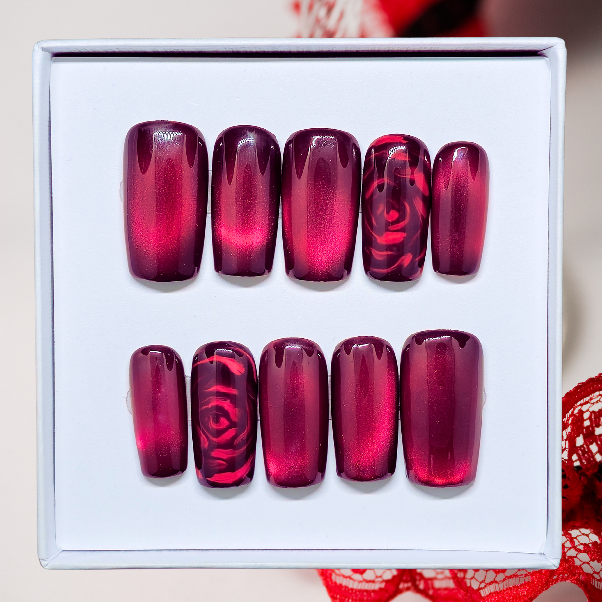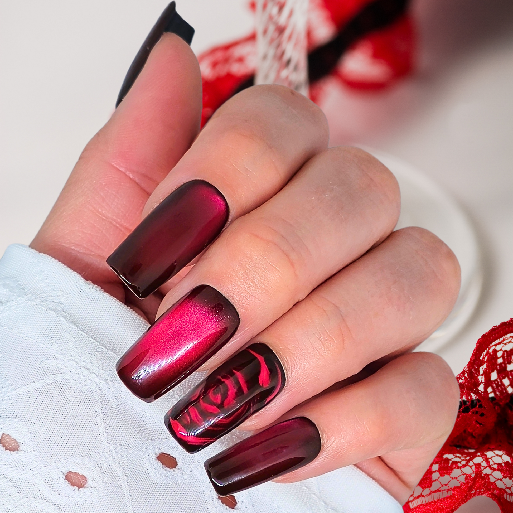 Saphira est une déclaration en soi. Ses reflets rouges captivent comme une braise ardente, tandis que la rose noire en transparence dévoile une sensualité contenue mais farouche. Pour les femmes rares, affirmées, précieuses — et inoubliables.